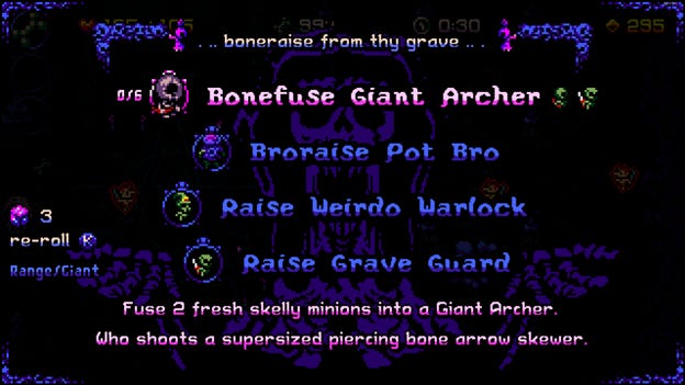 The meta progression in this game also includes adding enemy waves, allowing you to get more resources, but having to fight more enemies. And each time you level up, you get to transform your minions into stronger or different versions, some requiring you to take specific paths to attain.