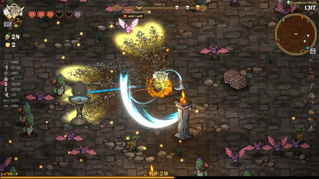 In Brotato, you play as different potatoes with their unique attributes and buffs. Whether they excel in melee combat, can only carry one weapon, or are great with magic weapons, each potato has its way of playing. And if you don’t like meta-progression, well this is Bullet Heaven without meta-progression.