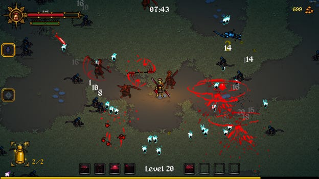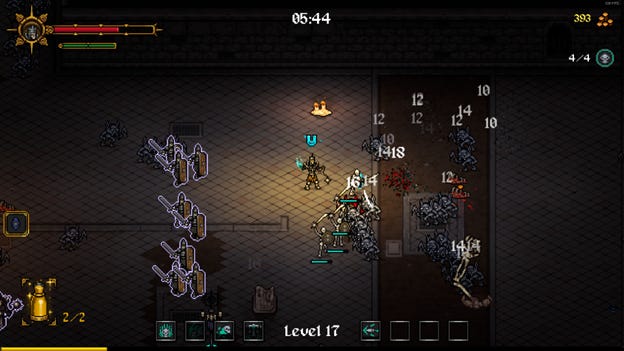 While the game has a slower pace when compared to other Bullet Heavens, it doesn’t mean it’s easier. With flasks in their inventory, and even getting invaded by foes, it’s obvious that the game’s atmosphere and gameplay are inspired by the Souls Series. And the slower pace doesn’t mean the enemies are any slower, as they can easily crowd you in tight spaces, and, just like the Souls Games, the bosses are fun and challenging. Remember to dash (roll).