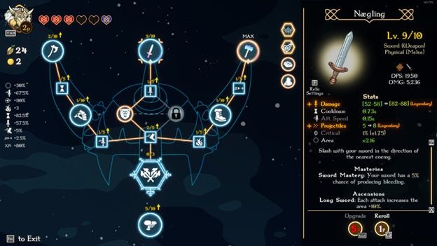 In Nordic Ashes, you pick from 10 unique survivors to play as after the End of the World, battling creatures in 9 different realms. Each character has their own Talent Tree, which can be improved by playing as the character, as well as having their own weapons tree while going off on your adventures. The meta progression is shared by all the characters by obtaining leaves for Yggdrasil.