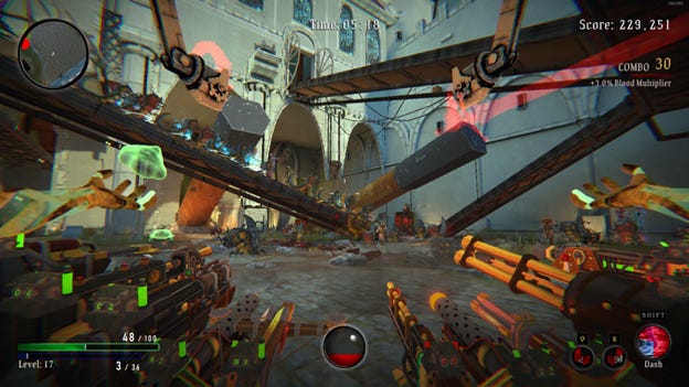 A First Person Bullet Heaven, but how do they shoot 12 guns at once?